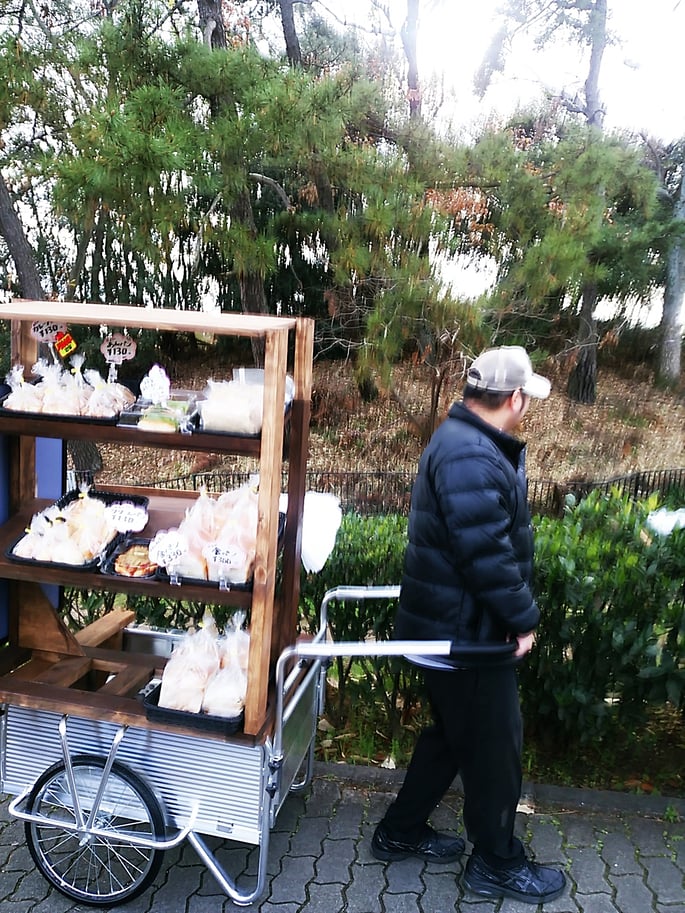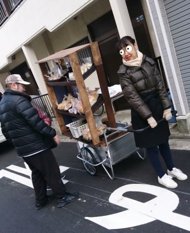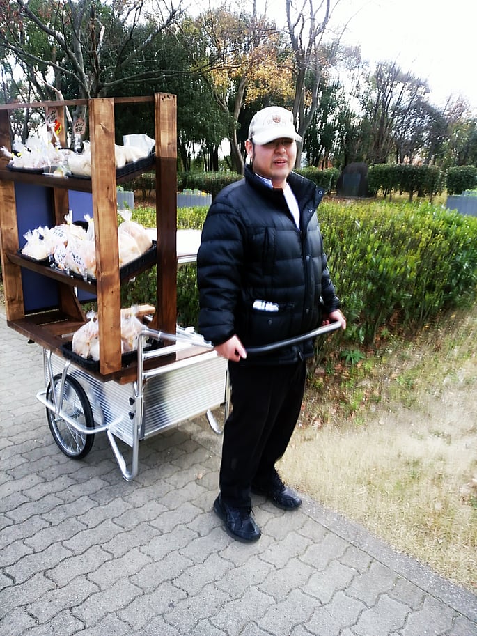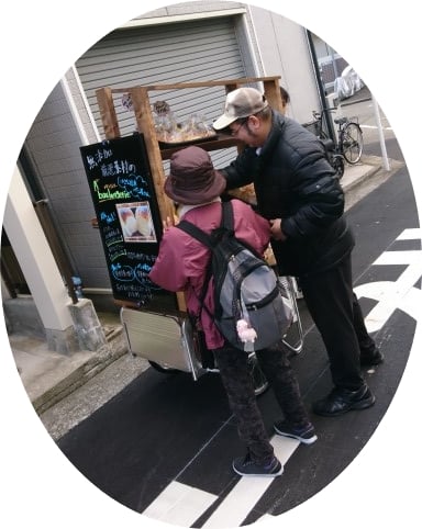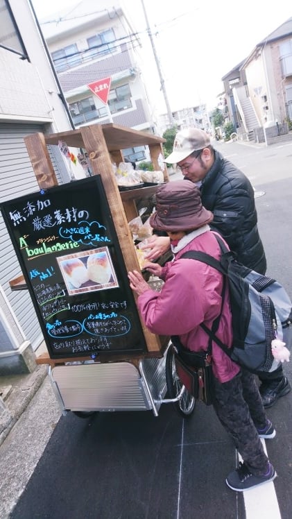 リヤカーで仁徳御陵方面へ無添加パンのおしかけ(出張)販売に出かけました。「まん福亭」Aブーランジェリ-