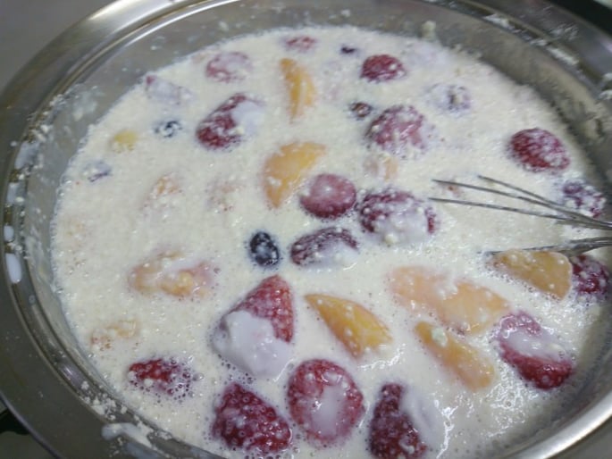 フルーツたっぷりの自家製無添加砂糖不使用アイスクリームミックスです。