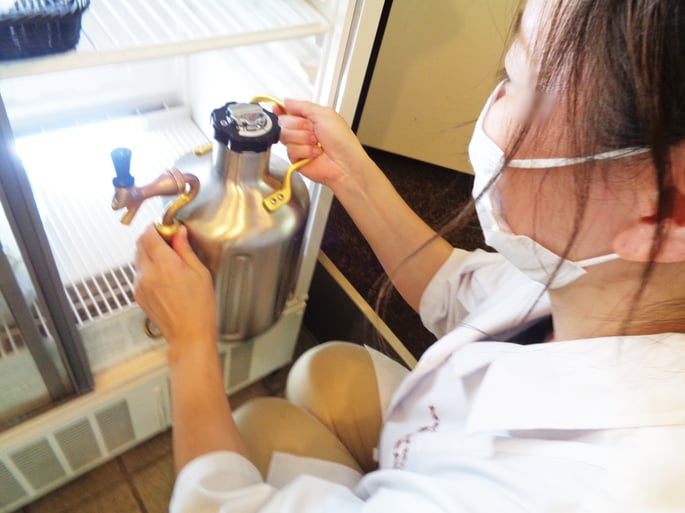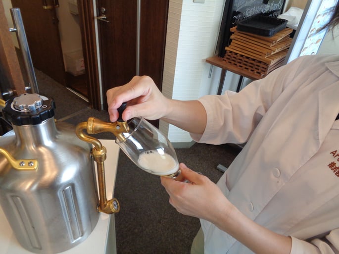 サーバーに冷たい生ビールをナミナミと注ぎます。