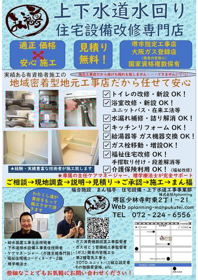 また、水回り工事全般及び、住宅改修・バリアフリープランニング・施工までトータルにプロデュースしております。