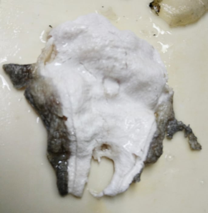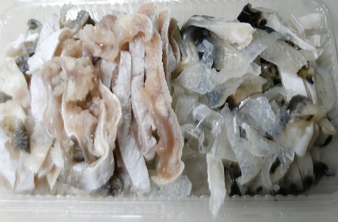 河豚の皮は三層あり、一番外側は先ほどの「てっぴ」、その次の層がこの「とおとうみ」です。一番最後に「身皮」です。